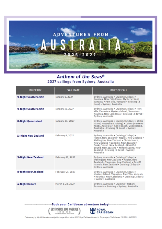 Royal Caribbean, Caribbean 2026 – 2027 Posted on 1 July 2024 (17 November 2025) by Marisa Agius Read More
